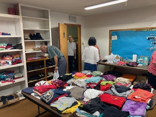 Distributing clothing at North Amarillo Church of Christ